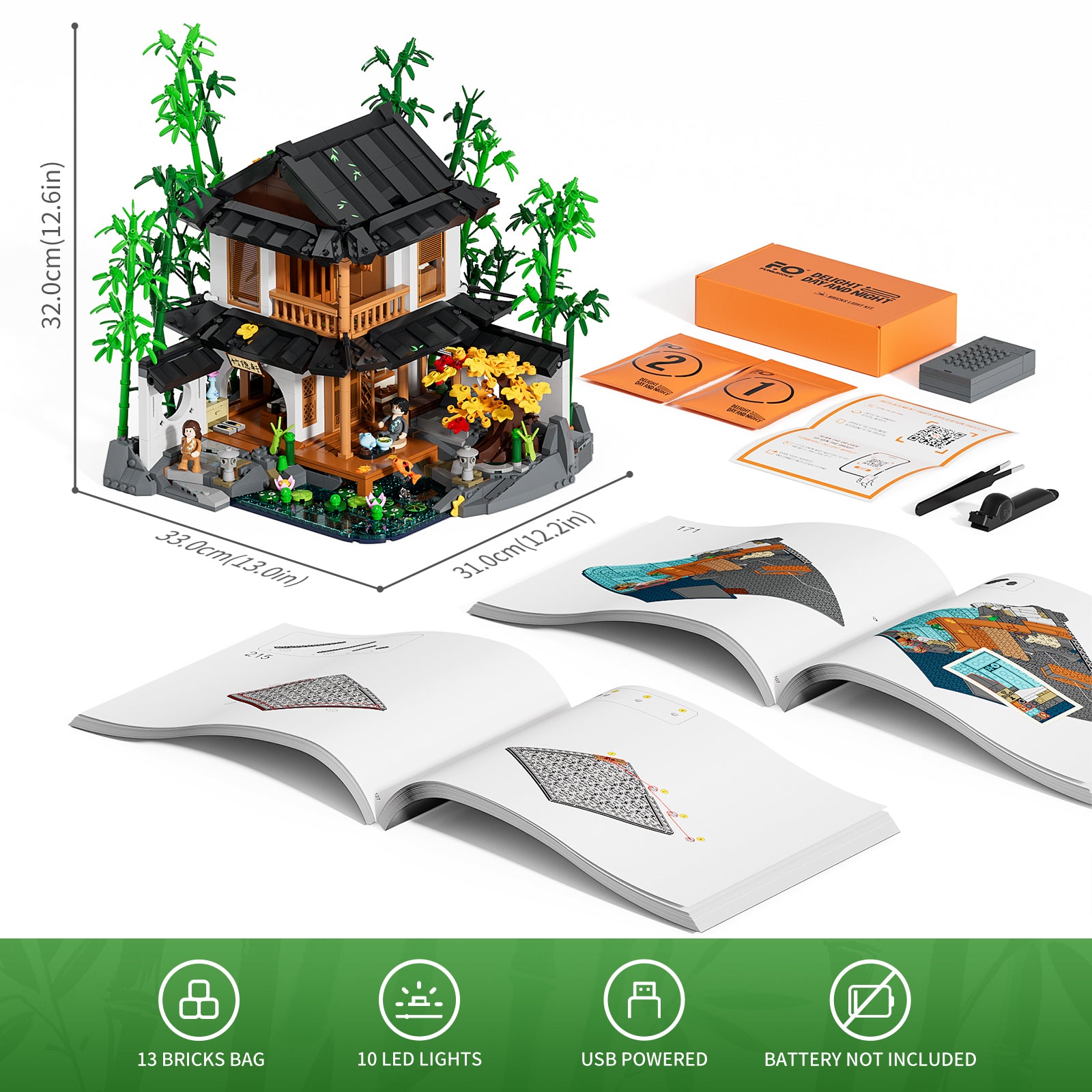 Bring the serenity of traditional Oriental architecture into your home with the Lumibricks Bamboo House. This intricate 2,432-piece building kit combines cultural elegance with modern LED lighting, creating a captivating display day or night.