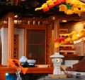Features a classic bamboo-inspired roof, koi pond, tea room, and beautifully detailed garden, capturing the essence of traditional craftsmanship. -