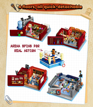 Featuring a rotating boxing ring and movable scaffolding, this four-tiered system delivers a visually engaging, modular, and dynamically interactive immersive construction experience.