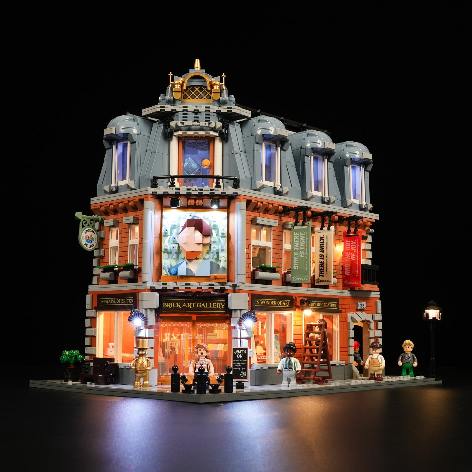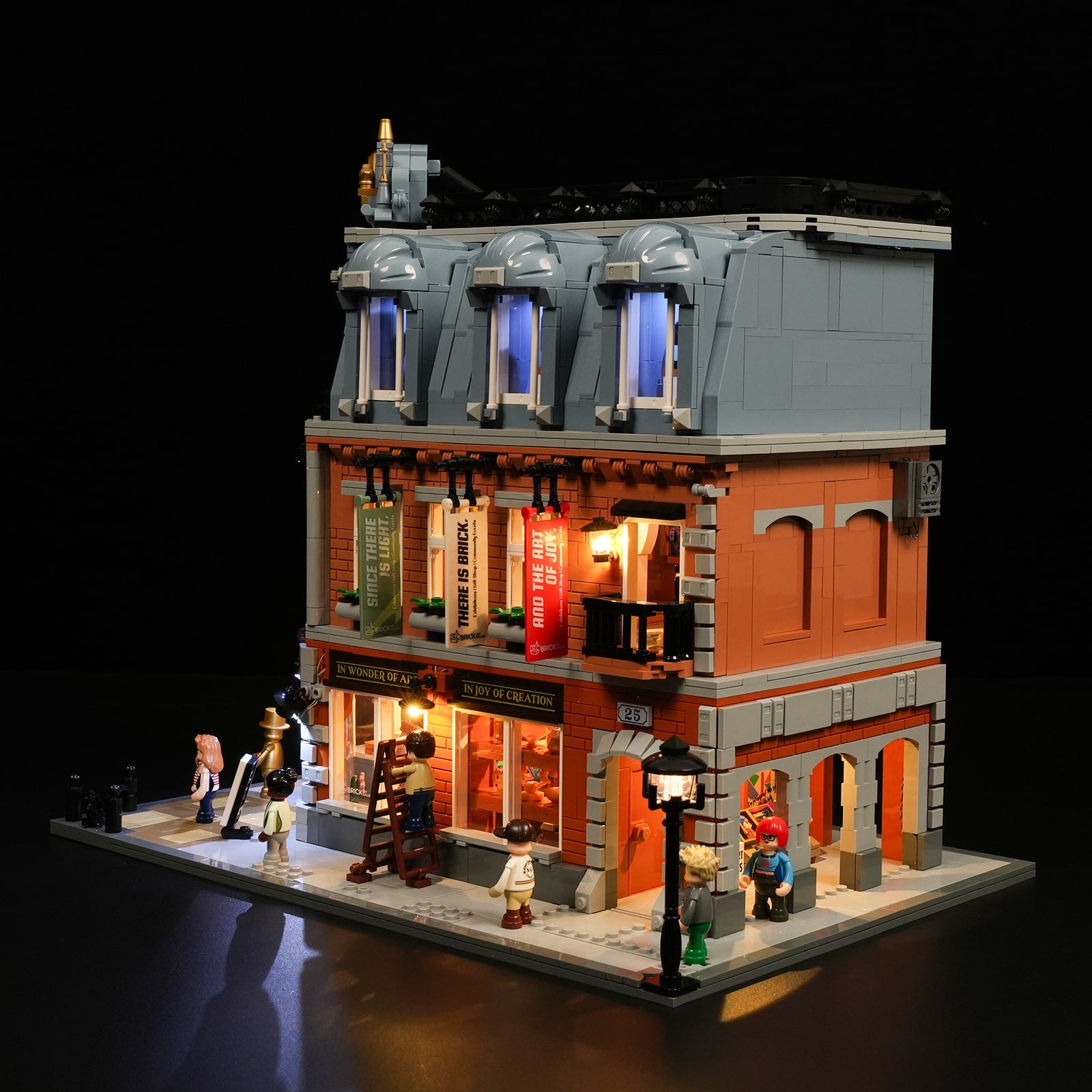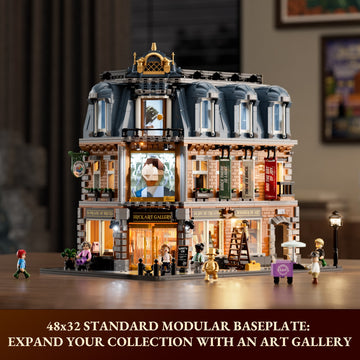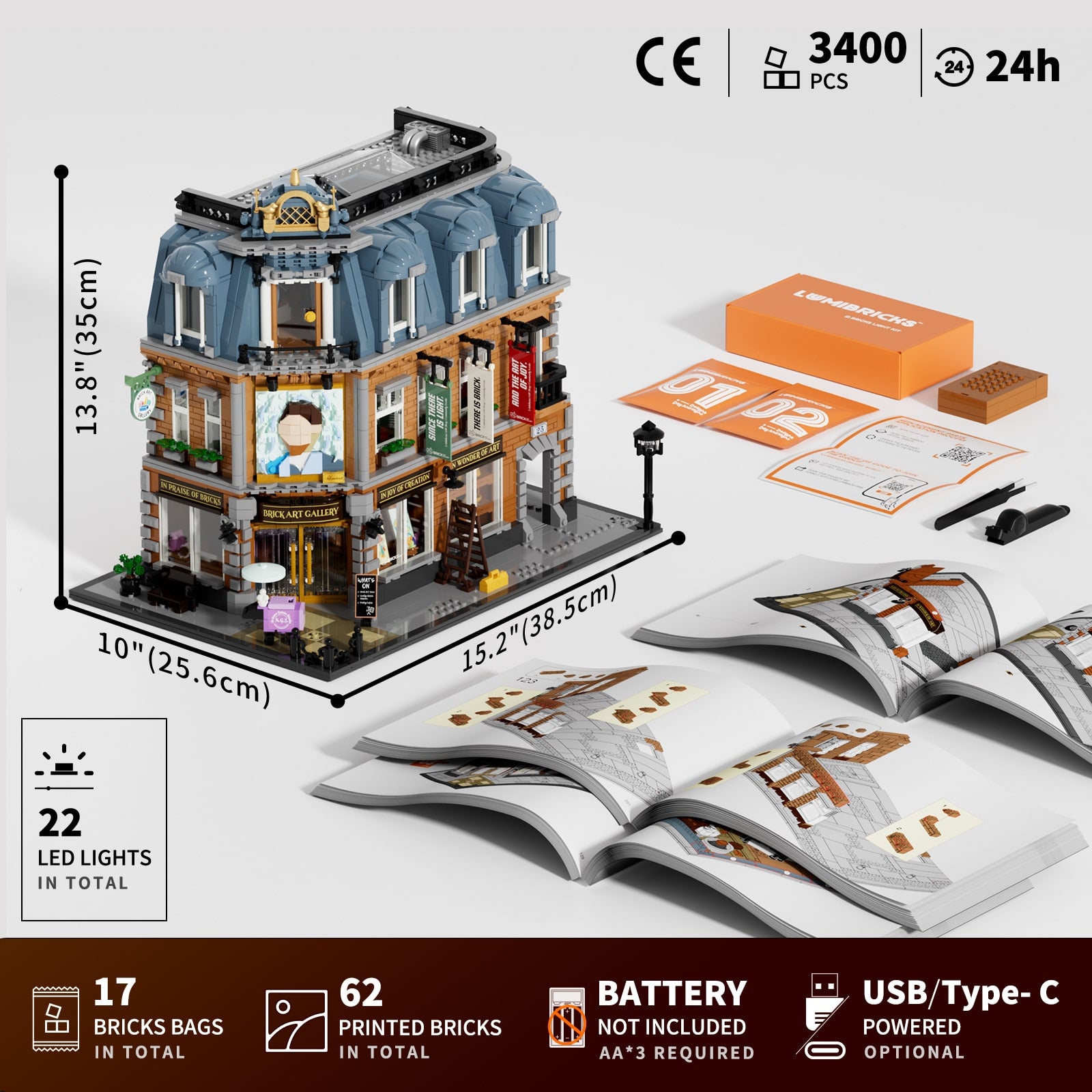 A refined modular building set that blends architectural elegance with artistic flair. Featuring 3,400 pieces, this gallery comes alive with 22 built-in light points and 7 light strips, perfectly illuminating every masterpiece.