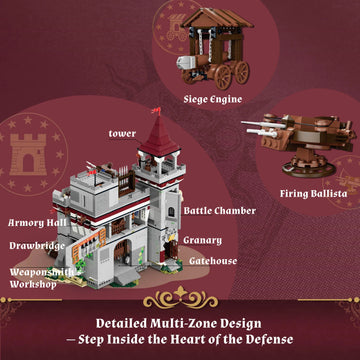 The first medieval building block set centered around a “castle armory,” recreating the fortress's core area from weapon storage and maintenance to combat command.