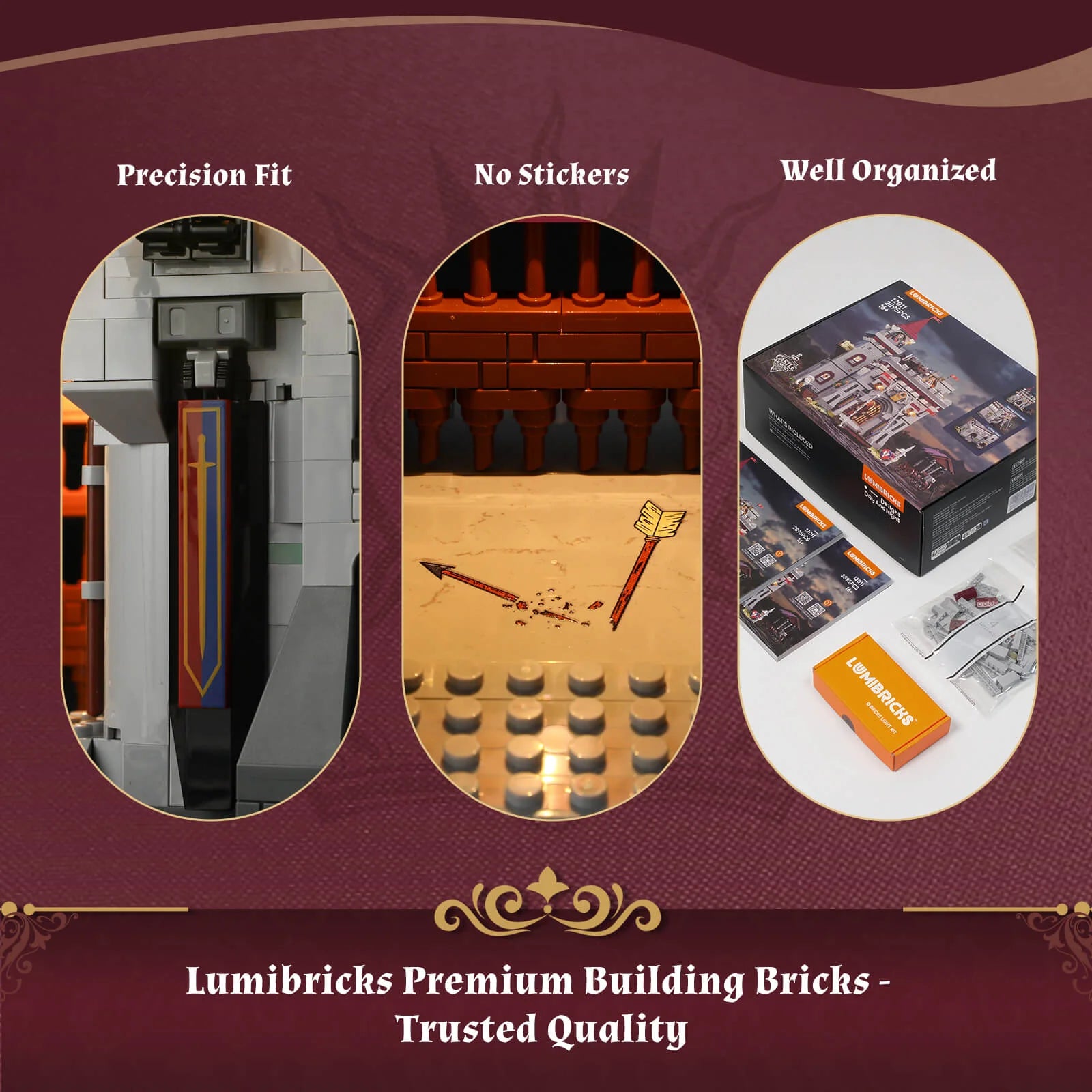 Step into the heart of a medieval fortress with the Lumibricks Castle Armory, a grand and intricate armory designed for both display and imaginative siege play. This set brings together the raw power of a castle’s weapon storehouse and the strategy of a war room, combining architectural elegance with functional combat design.