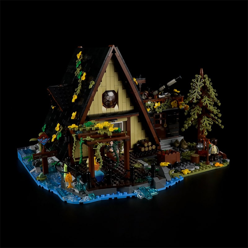 We have combined lighting with 2061PCS blocks in an innovative way to present stunning lighting effects and to showcase the homey feel of the A-frame chalet more prominently.