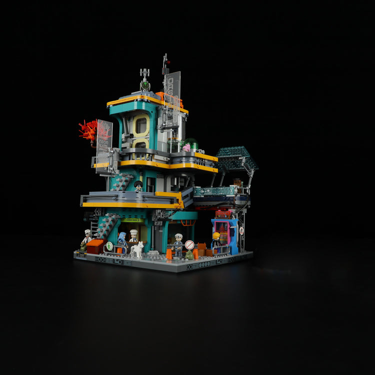 Inspired by the cyberpunk aesthetic, this set features edgy architecture, vibrant signage, and detailed interiors that reflect the gritty yet electrifying atmosphere of a high-tech city.
