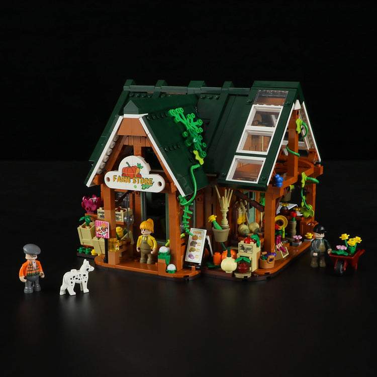 Create a charming countryside scene with the Funwhole Farm Store Building Set, featuring 2043 pieces and an integrated lighting kit that brings the farm store to life.
