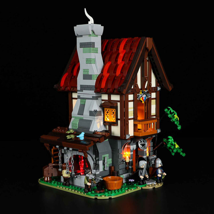 The included lighting kit adds a warm and inviting glow, bringing the forge to life as a stunning display piece.