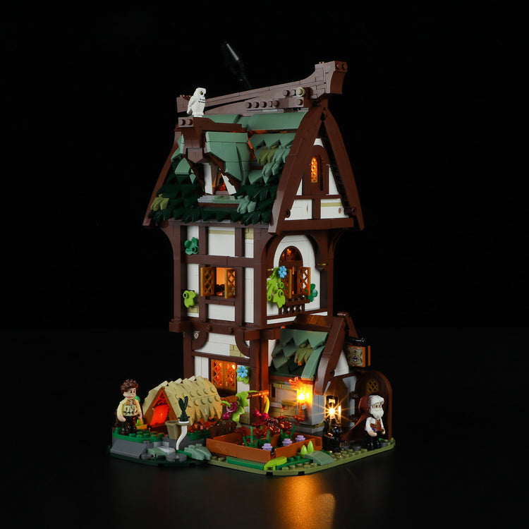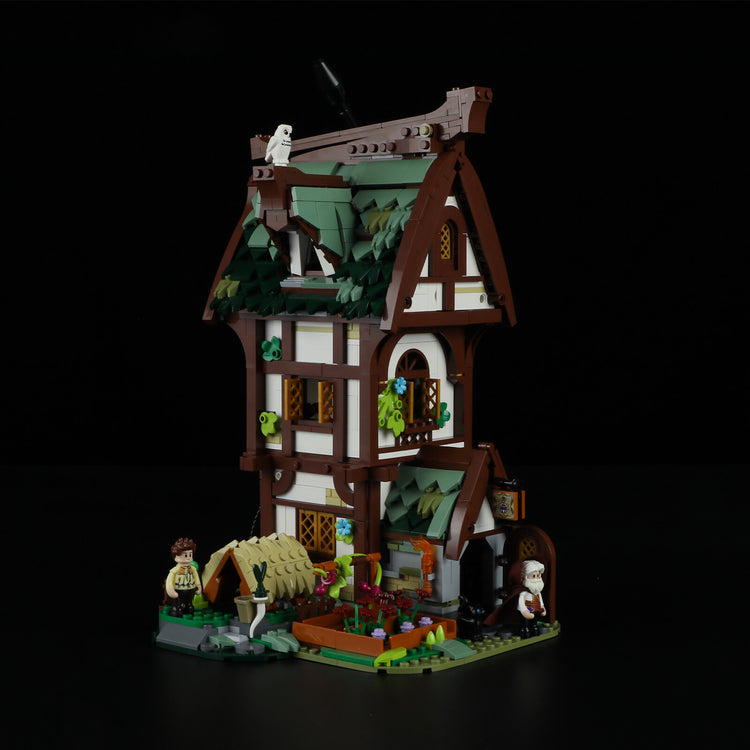 Experience the versatility of this building with its three distinct floors. The first floor serves as a store, the second floor as a potion refining room, and the third floor as a bedroom. Accompanied by two minifigures and two animals, it creates an authentic medieval atmosphere. With quick lift-off designs and openable walls, this set offers endless playability and immersive fun.
