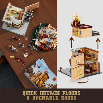 Steampunk AeroSteam Club provides steampunk fans with a set of vintage architectural scenery containing typical “flying” elements, enriching the sense of themed scenes and stories. It is the first single building in the Steampunk series with modular baseboards. Unleash your creativity with the Funwhole Steampunk Flying Club Building Set, a stunning model featuring 1858 detailed pieces. This unique set showcases the industrial elegance of steampunk aviation with intricate propellers, gears, and vintage-inspired designs. Let your imagination take flight with this glowing masterpiece!