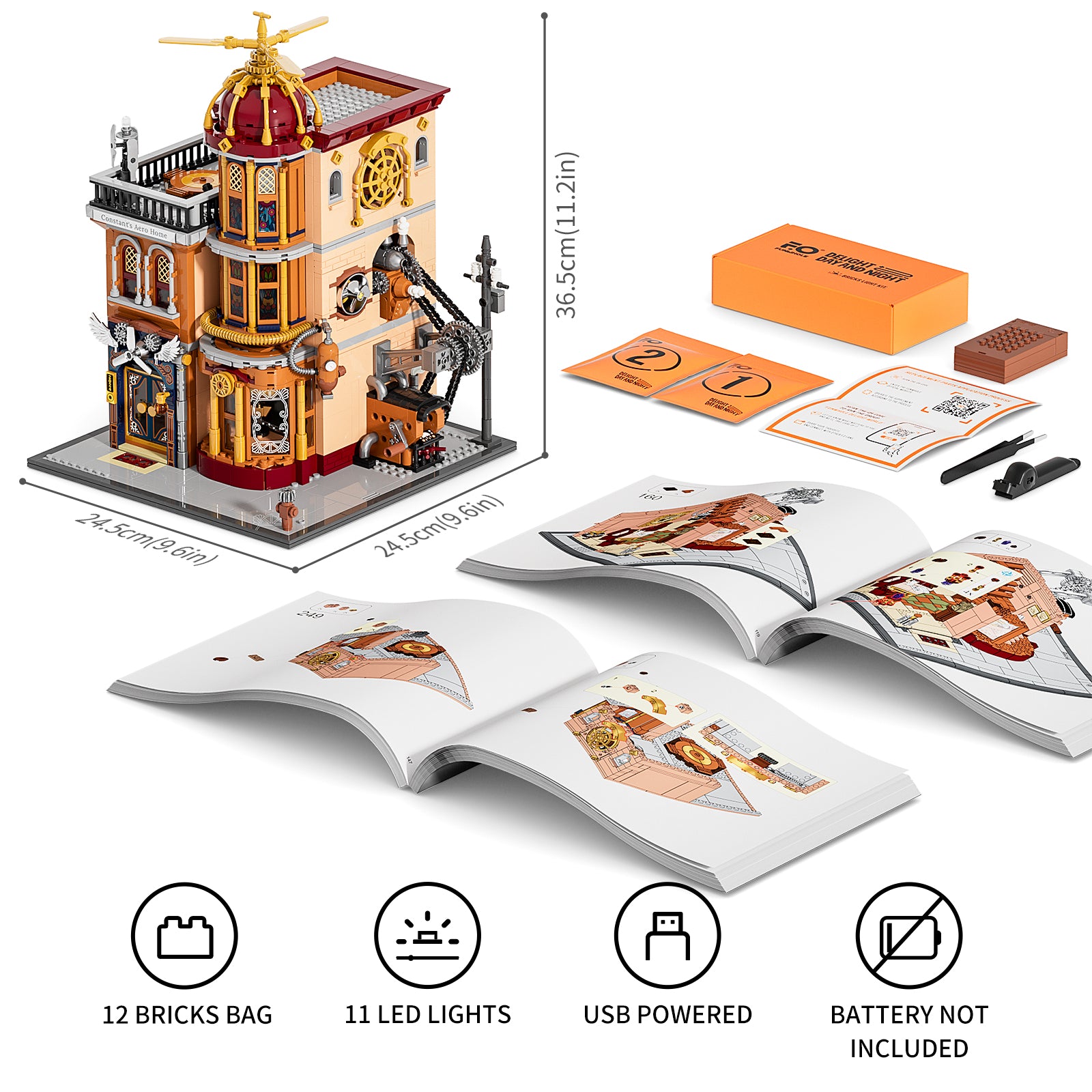 The product includes building blocks 1858PCS, 12 bricks bags, 11 LED lights, and a clear assembly guide. Can become a an excellent gift, that is, enough fun and cultural representation, but also easy and smooth building experience.