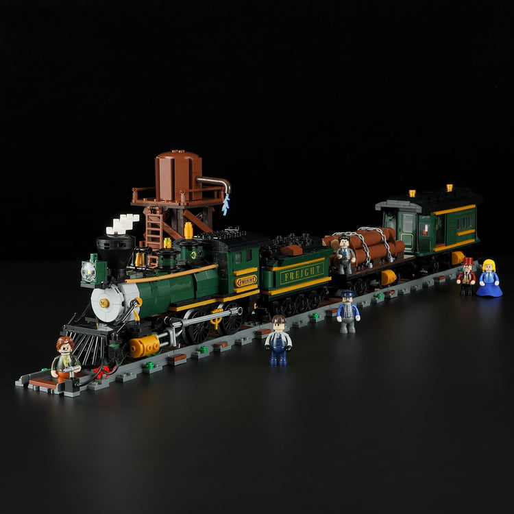 The design of the Western Freight Train 1524PCS is based on historical facts, specifically the classic 4-4-0 steam train used in Western freight transportation. The train features a realistic representation of the coal and lumber transport cars, and even includes a luxurious private car modeled after real-life examples.