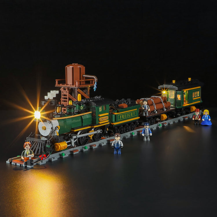 Western Freight Train comes with 7 light points, 4 light bars. With its coal-burning simulation in the locomotive's boiler and wall lights between train cars, this train's lighting design perfectly complements its western theme, resulting in a truly remarkable light show.