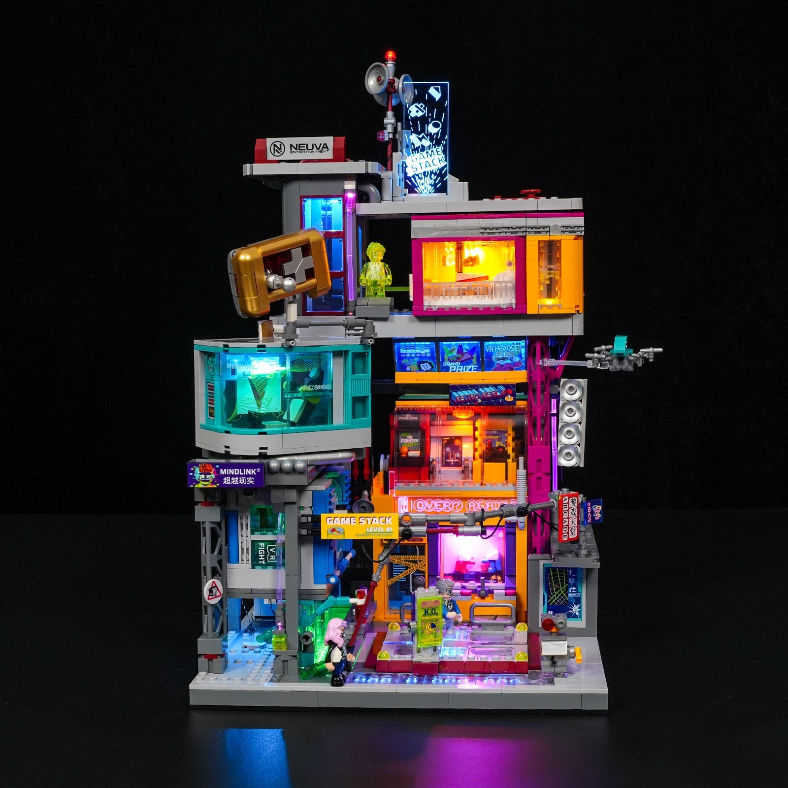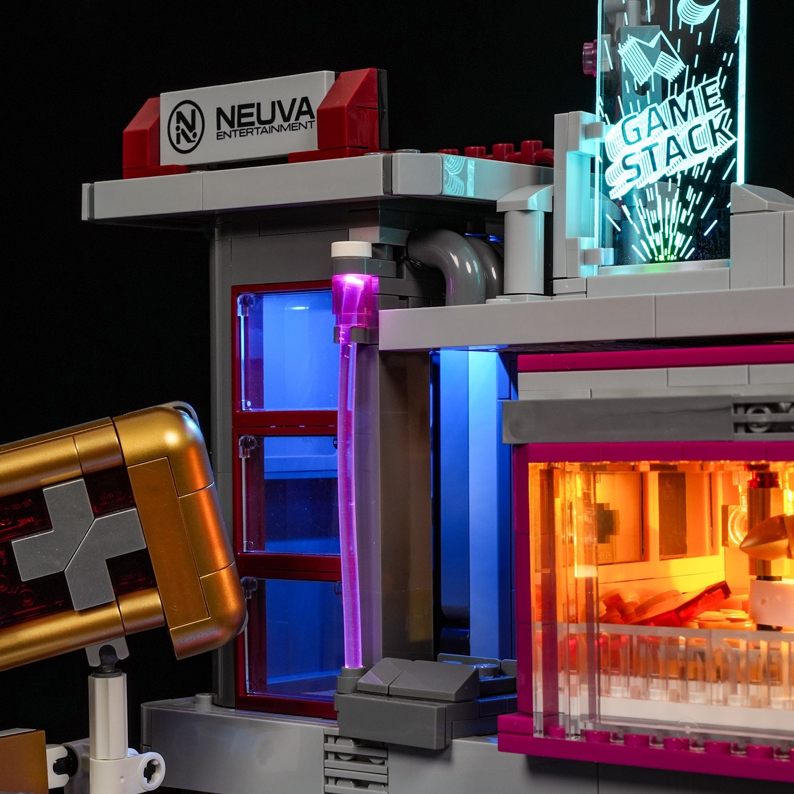 Step into a neon‑soaked world of high‑energy gaming with the Game Stack. With its towering, stack‑style architecture and immersive lighting features, this 2,580‑piece modular build brings bold cyber‑urban flair and interactive fun together.