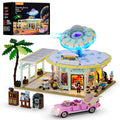 Step into a retro-futuristic world with the Interstellar Drive-In — a 2,188-piece masterpiece that blends classic diner nostalgia with sleek space-age design. The flying-saucer-shaped roof, neon-style lighting, and detailed interior make it both a joy to build and a stunning display piece.