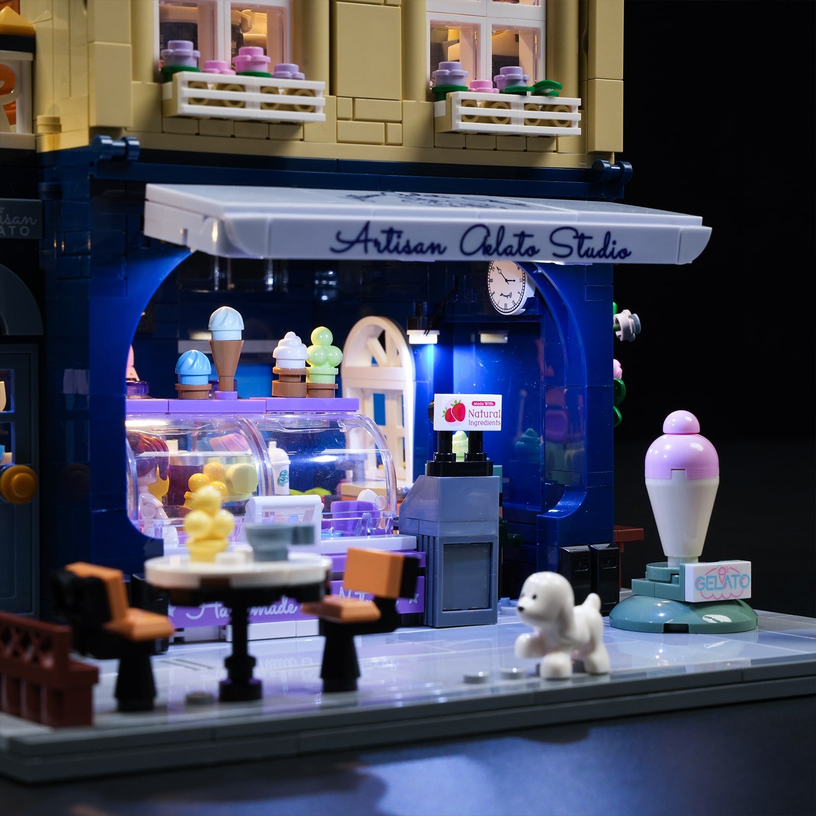 Add a touch of European charm to your modular city with the Lumibricks Gelato Store. This delightful 1,948-piece build captures the warmth and coziness of a classic dessert shop, enhanced with atmospheric LED lighting for day-and-night appeal.