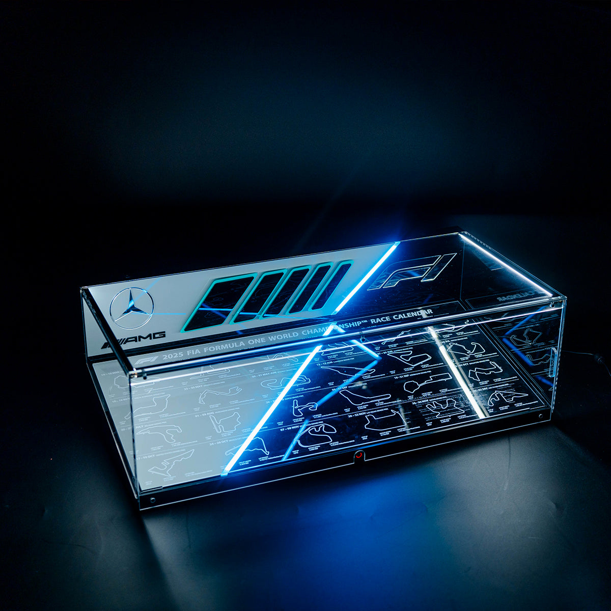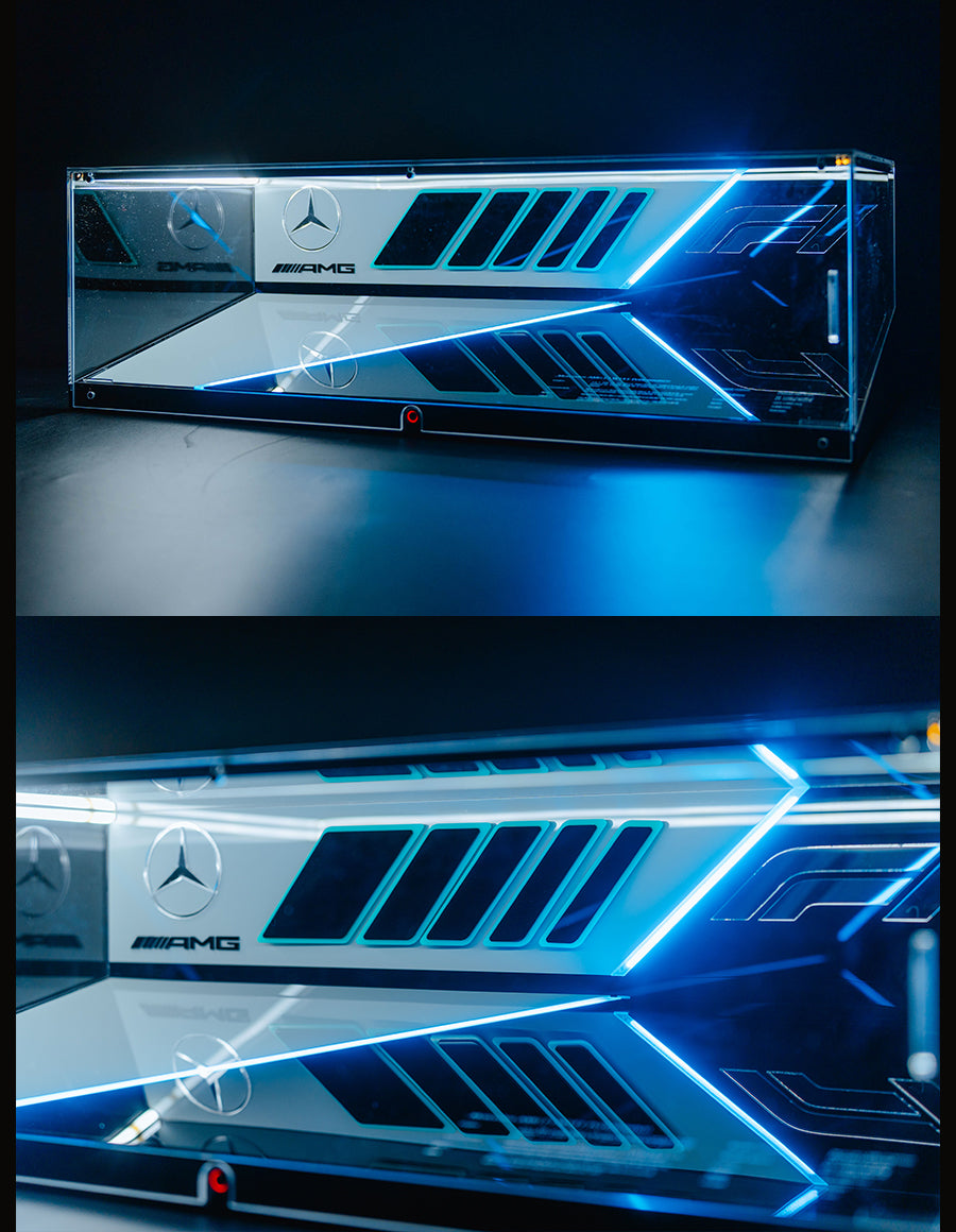 Precision-mounted LED lighting transforms your Formula 1 cars into centerpieces — highlighting every curve, color, and detail day or night.