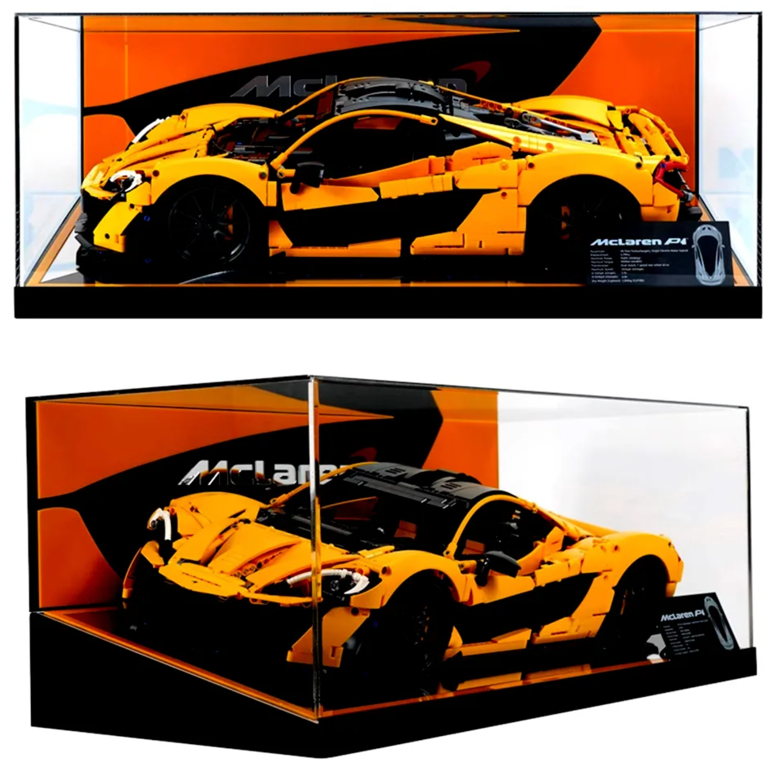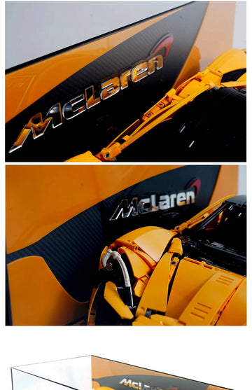 This premium acrylic display case is custom-built to perfectly fit the McLaren model, offering unobstructed views from all angles while shielding your hard-earned creation from dust, fingerprints, and everyday wear. With its clean lines and high-quality finish, this display case adds a refined touch to any room, shelf, or collection.