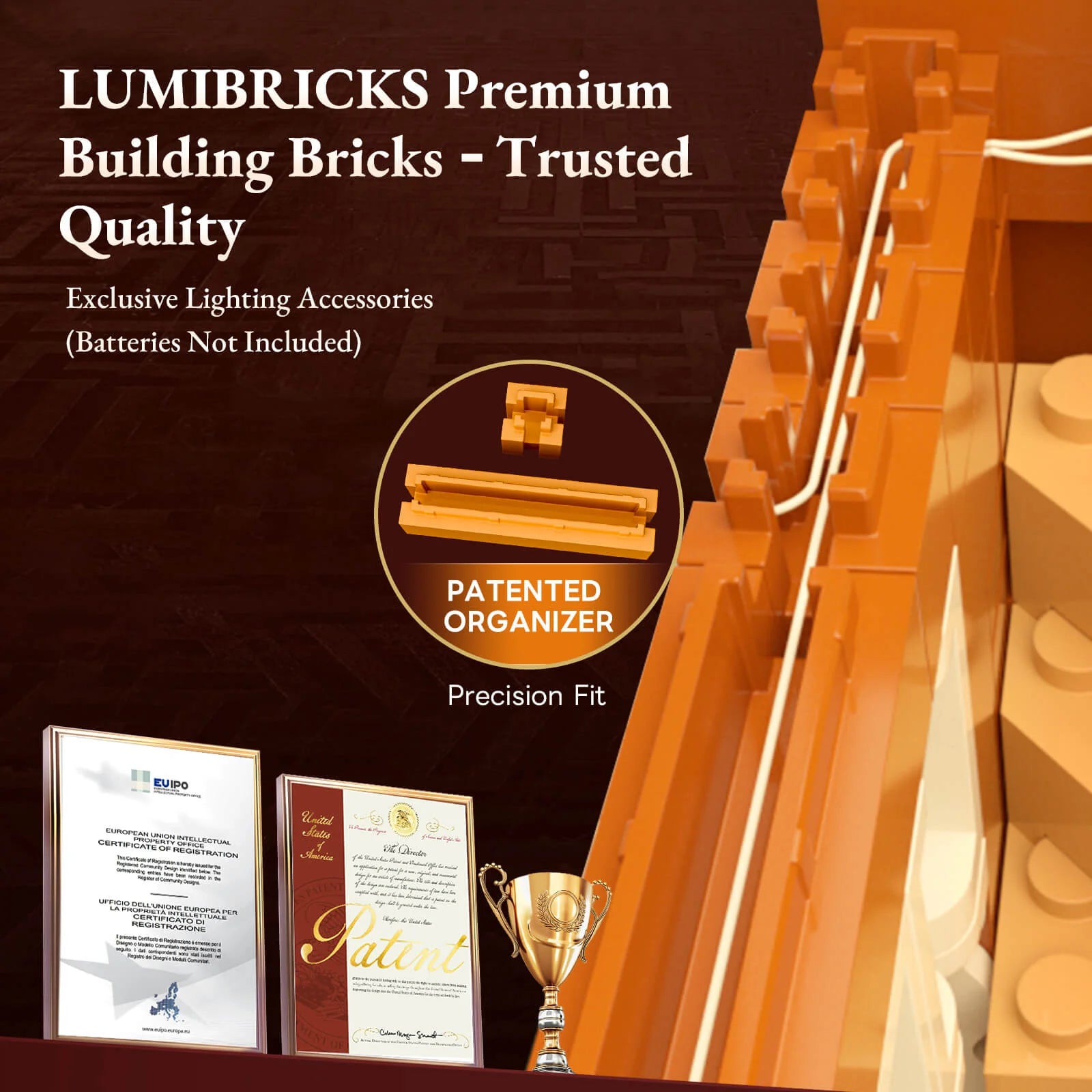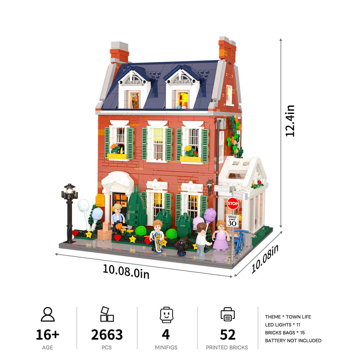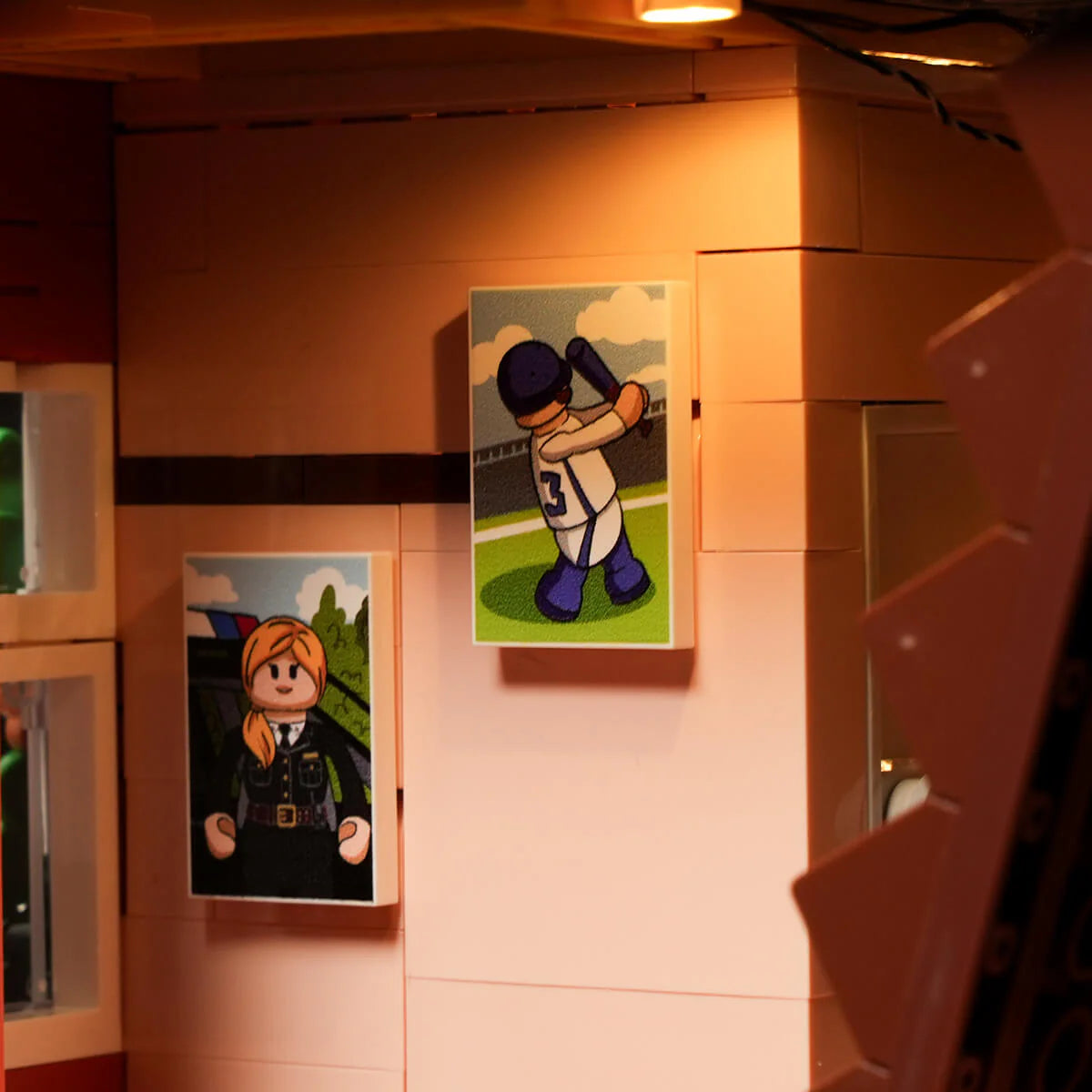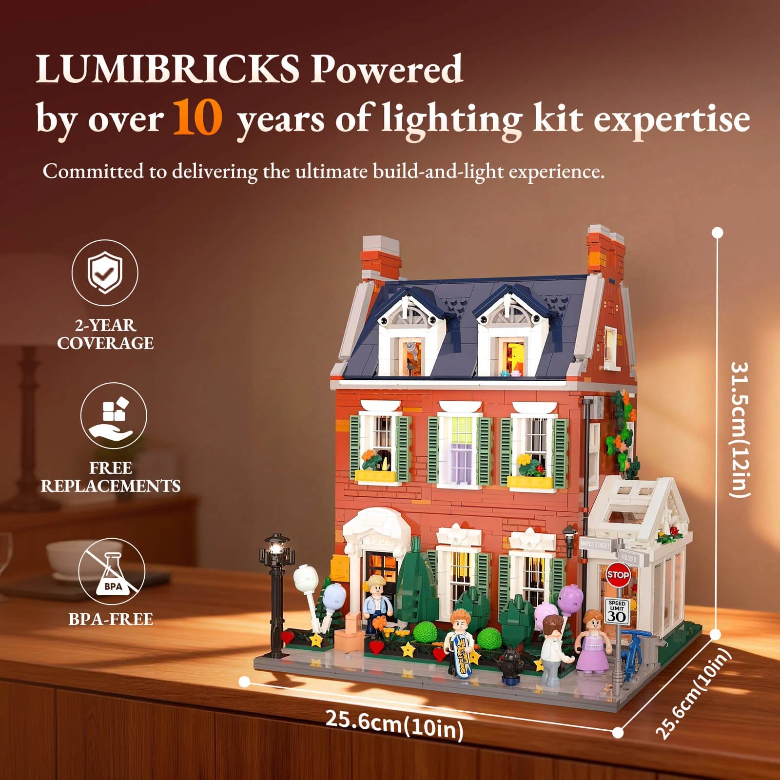 Soft, warm-white LEDs (11 light points) bathe the house in a gentle glow, giving your build a lifelike, cozy ambience whether on display or in photos. Strategic lighting illuminates every corner of the home, making it perfect for shelf displays or modular city streets.
