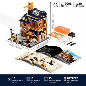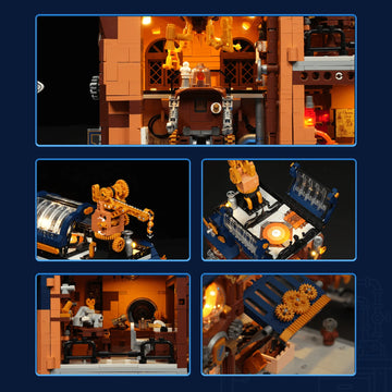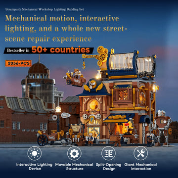 Unleash your creativity and step into a world where industrial ingenuity meets timeless design with the Lumibricks Steampunk Mechanical Workshop (11015). This richly detailed building set combines the charm of steampunk aesthetics with interactive features and dynamic lighting, making it a standout piece for your collection or display shelf.