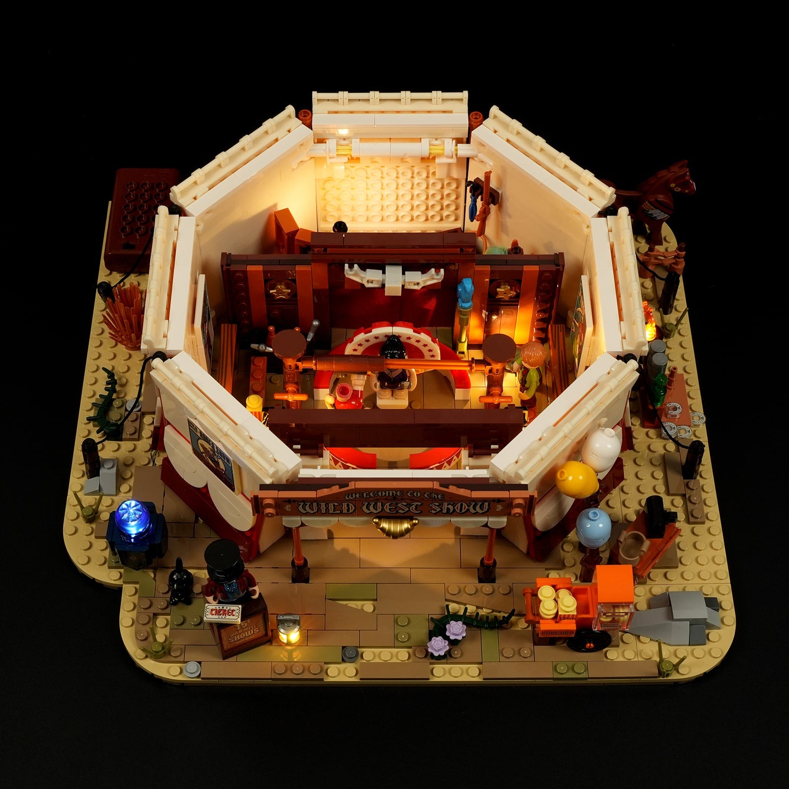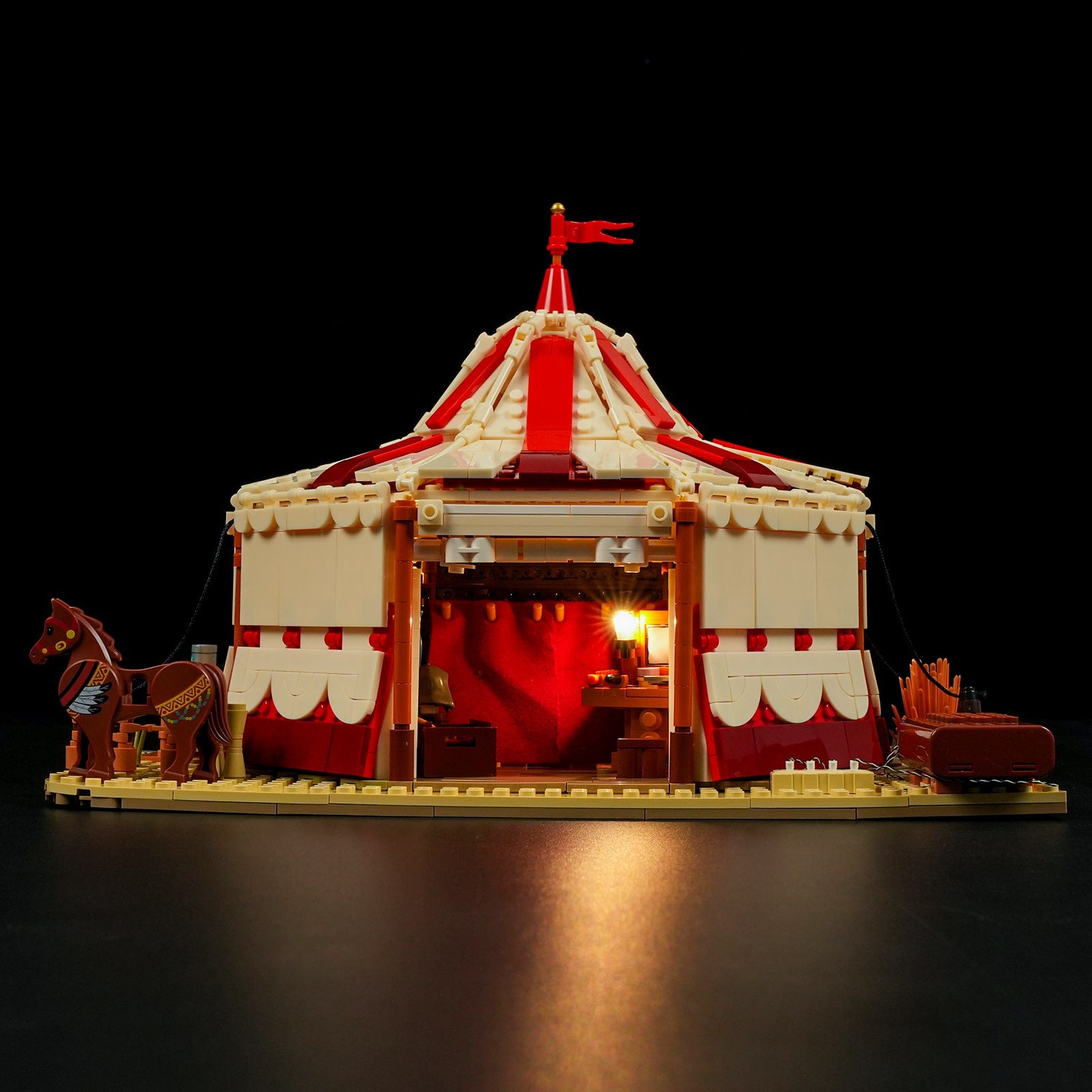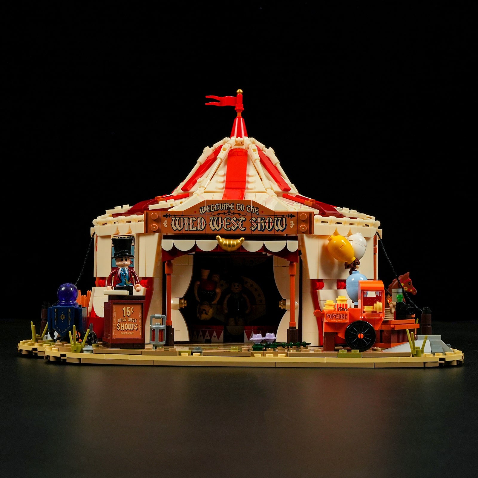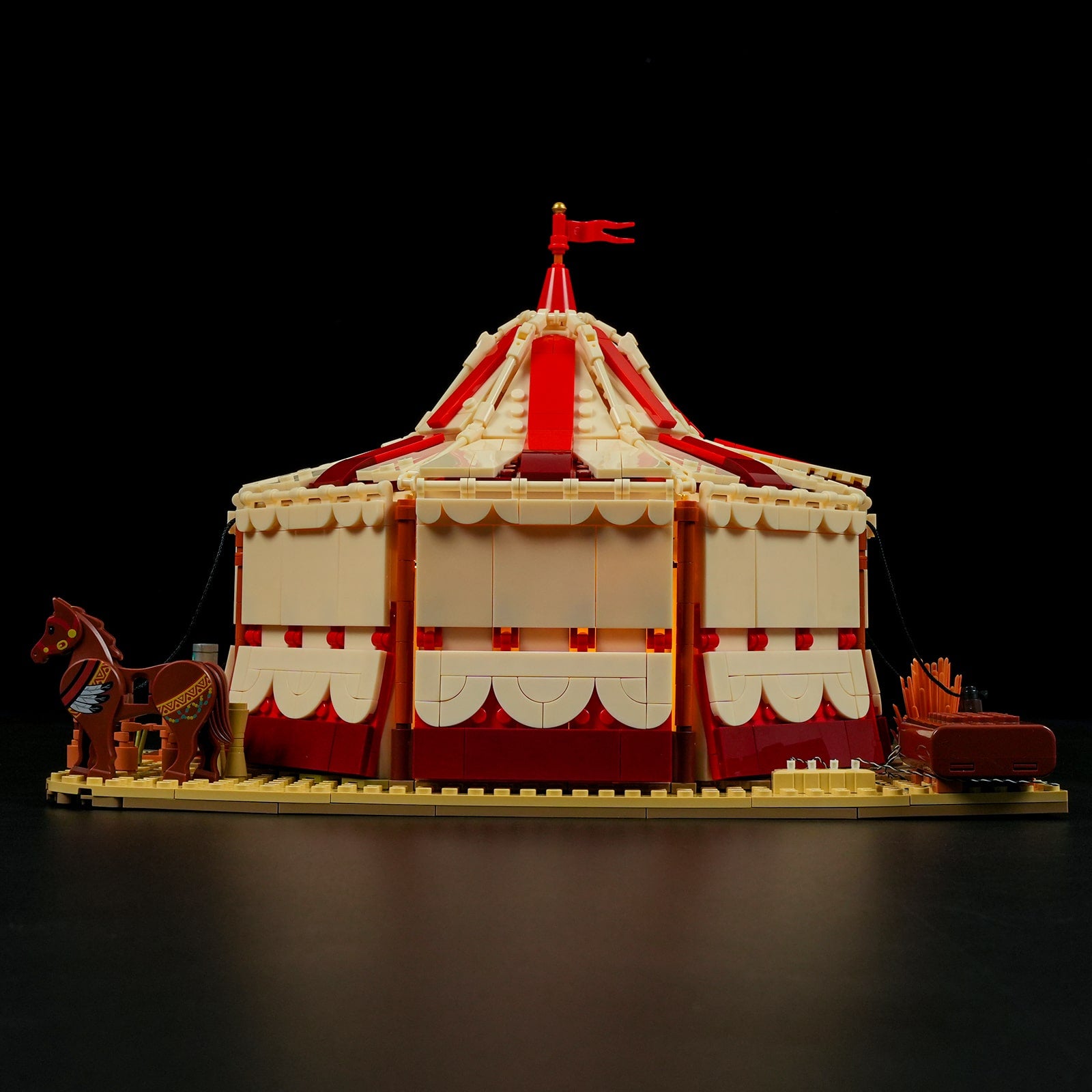 Featuring 1,962 pieces and 7 integrated LED light points, the circus comes alive with a warm glow that highlights every scene—from the bustling main stage to the detailed backstage areas. The semi-open structure allows easy access, so you can arrange mini-figures, props, and performances just the way you like.