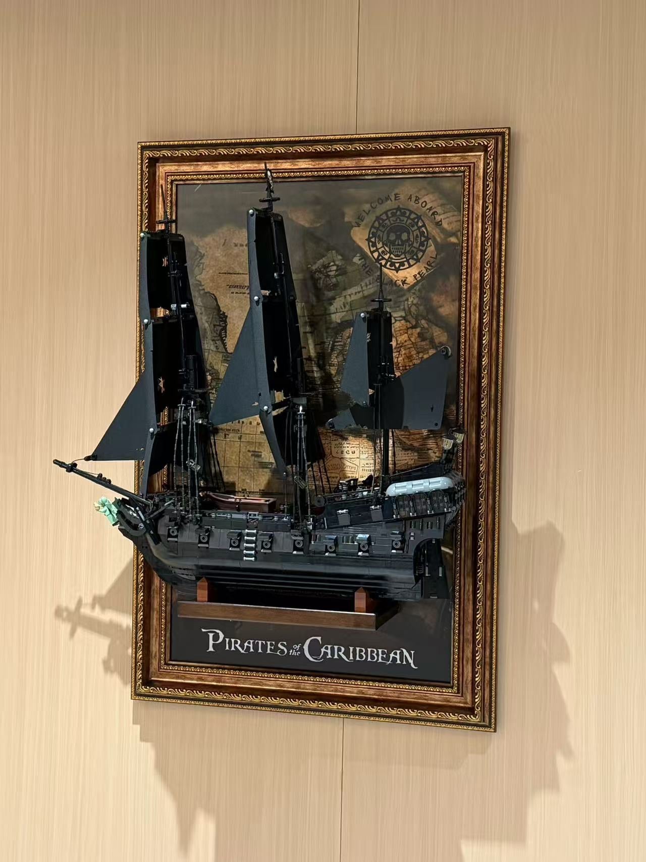Turn your Captain Jack Sparrow's Pirate Ship 10365 model into a stunning wall-mounted artwork.