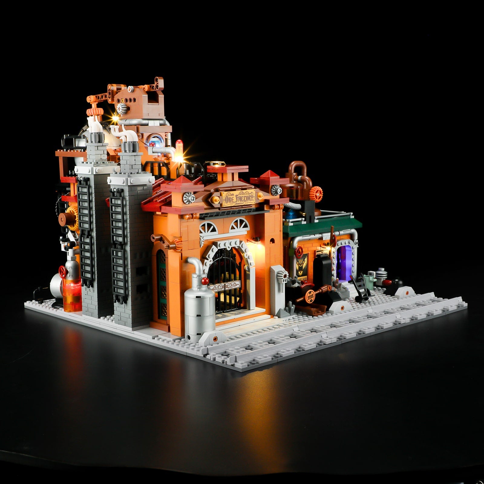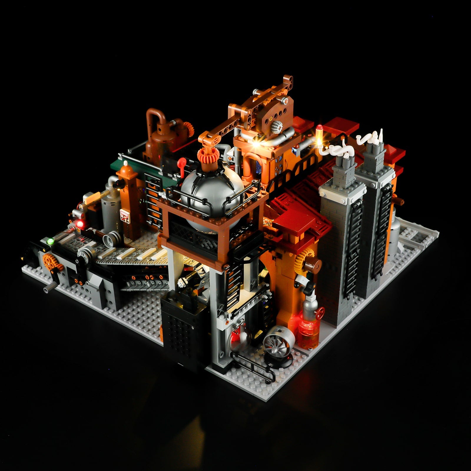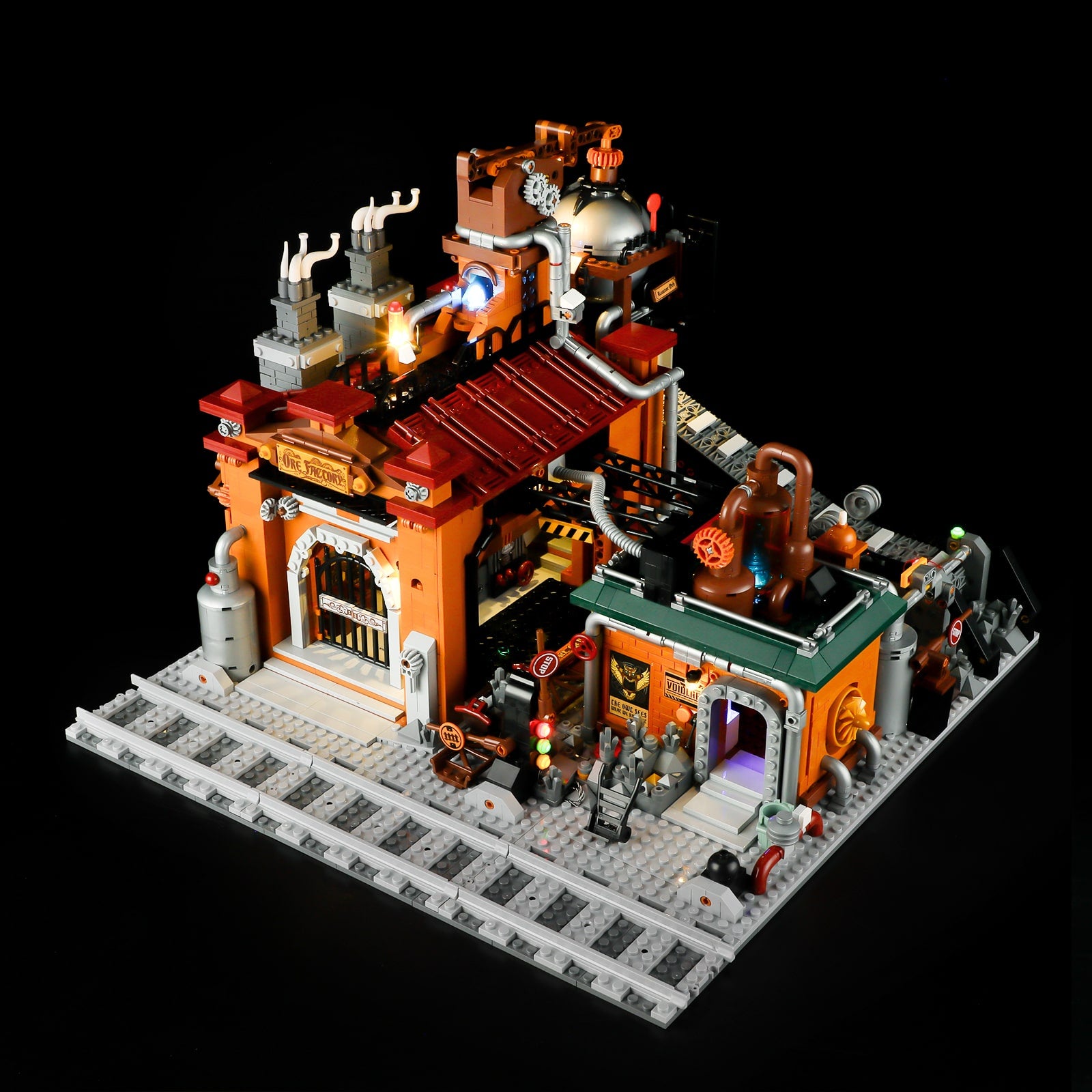 Maintains the steampunk retro lighting style with dynamic effects that respond to assembly, using red, green, and yellow signal lights to recreate the realism of factory operations.