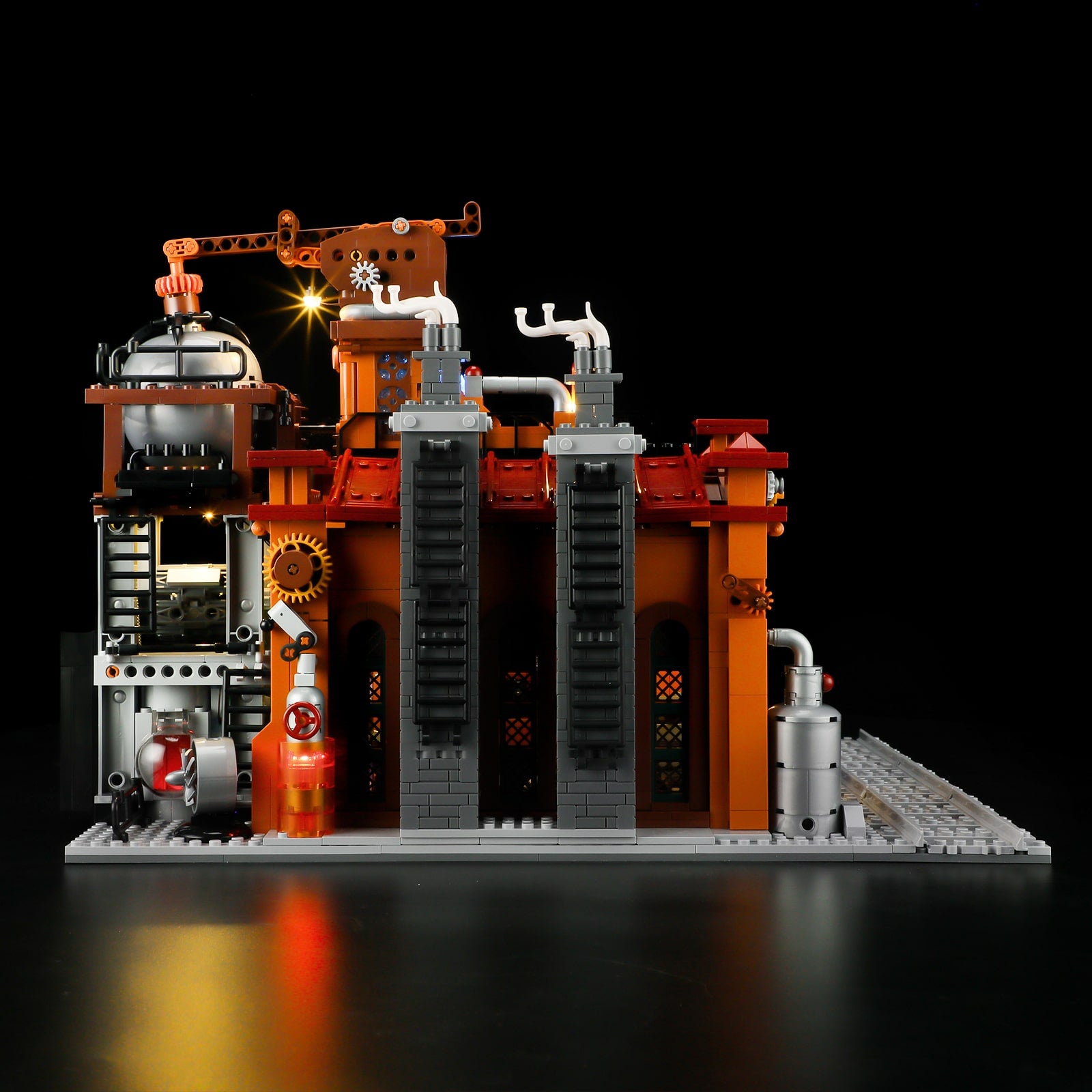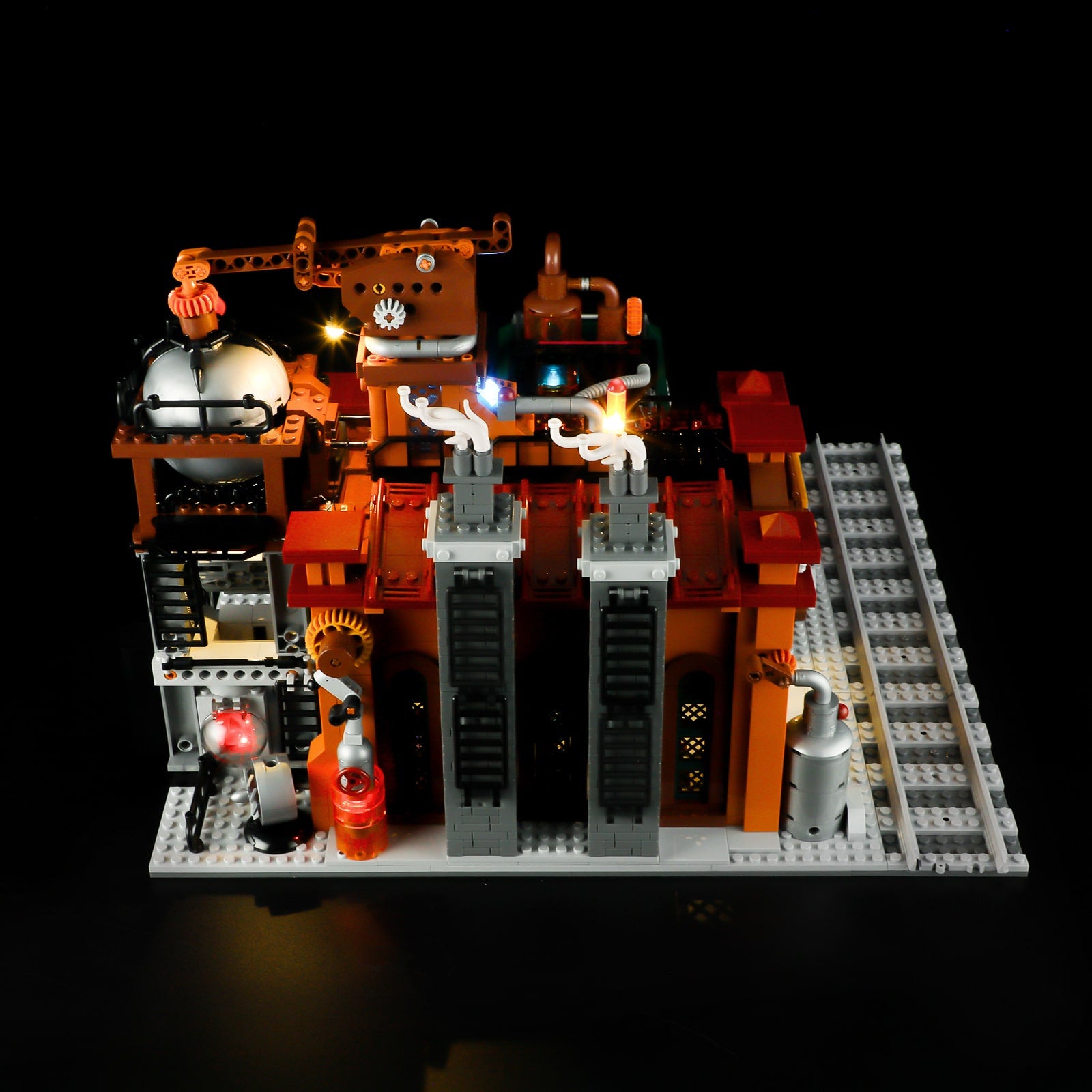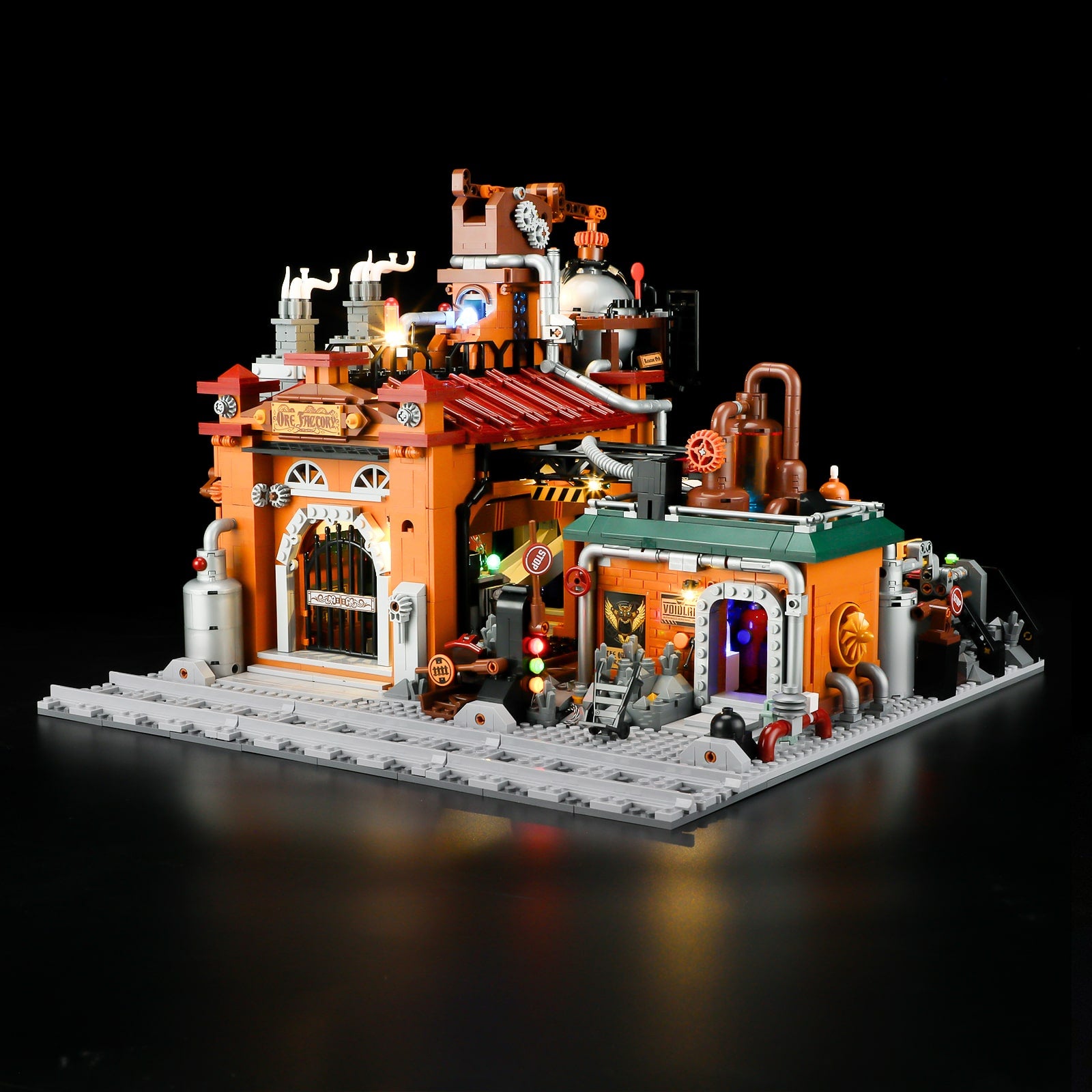 Maintains the steampunk retro lighting style with dynamic effects that respond to assembly, using red, green, and yellow signal lights to recreate the realism of factory operations.